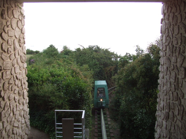 ケーブルカー(cable car)に乗って、いよいよ岡の上に出発。
