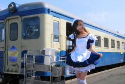 写真:アキバの現役メード「天草ちゅちゅ」さんと、添乗するひたちなか海浜鉄道の列車=茨城県ひたちなか市釈迦町アキバの現役メード「天草ちゅちゅ」さんと、添乗するひたちなか海浜鉄道の列車=茨城県ひたちなか市釈迦町
