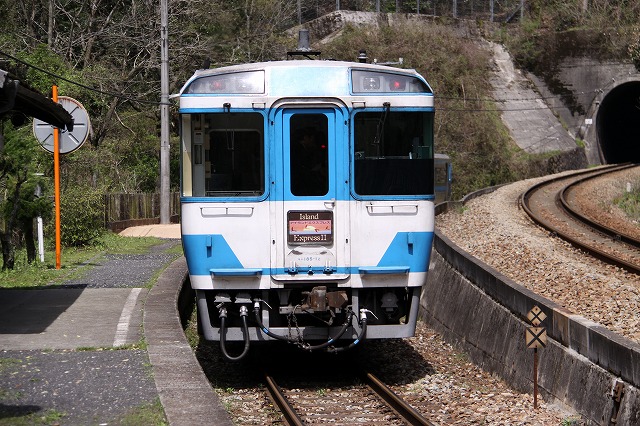 対向待ち後、一旦スイッチバック引き込み線に入った後、琴平方面に走り去りました。