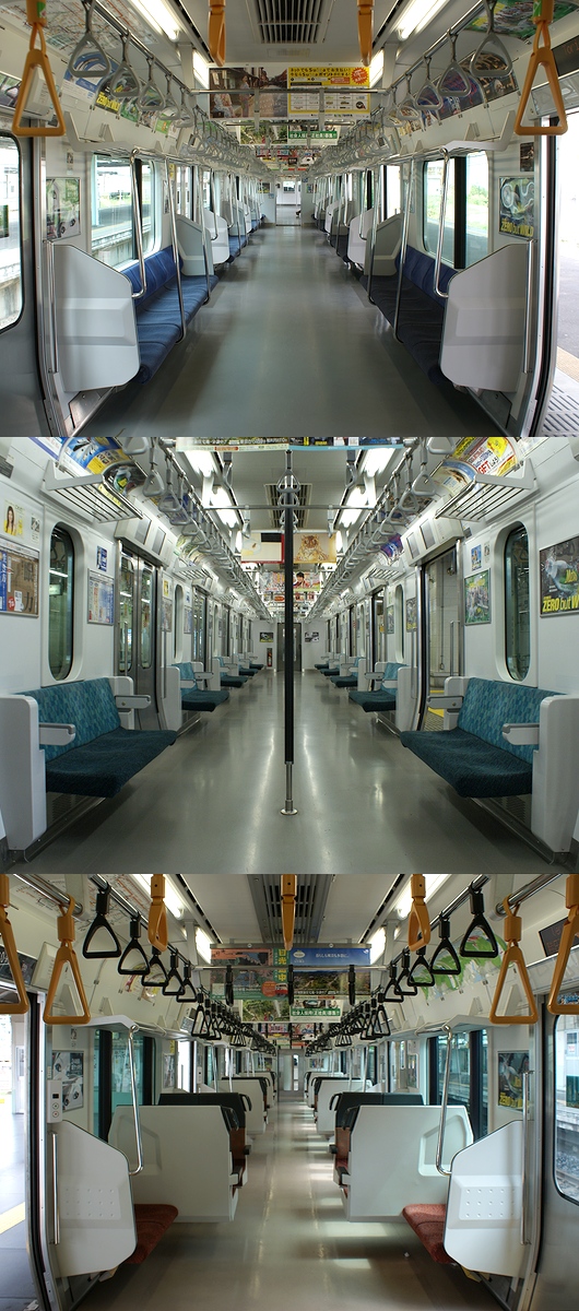 上:E231系0番台の車内。