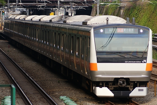 普段は見られない東小金井(Higashi-koganei)行の快速電車。