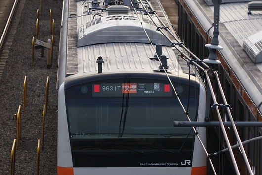 こちらも、普段は各駅停車でしか見られない三鷹(Mitaka)行の電車。