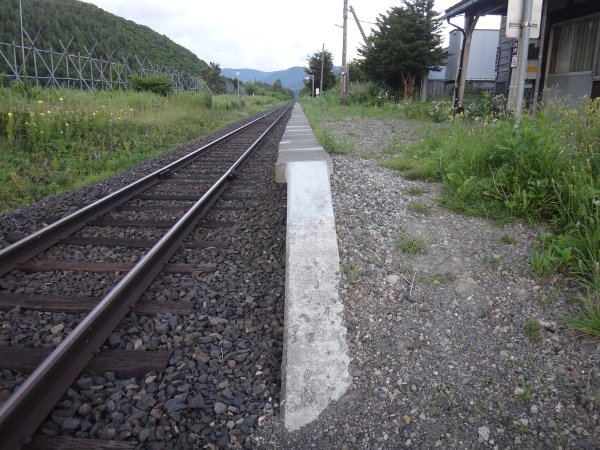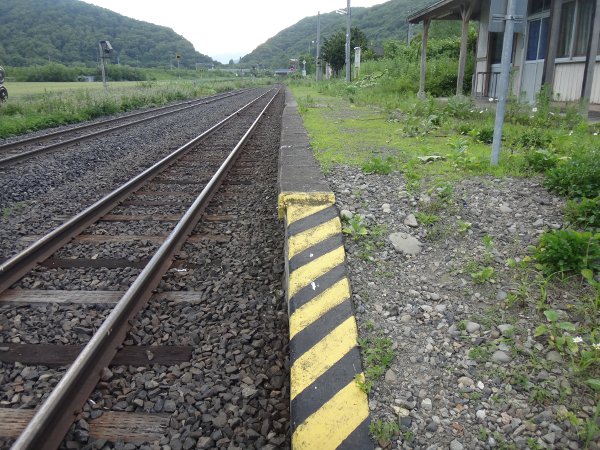 2面3線の駅ですね。駅舎側の1番線から2・3番線へは構内踏切を渡りますが、警報機はあれど遮断機がありません。室蘭線辺りとは金の掛け方が違いますね。