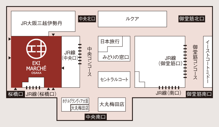 駅ナカ施設の 「EKI MARCHE」は、JR宝塚駅に続いて2件目です。「EKI MARCHE」の開業で、大阪駅のリニューアルは、完成とみていいでしょう。