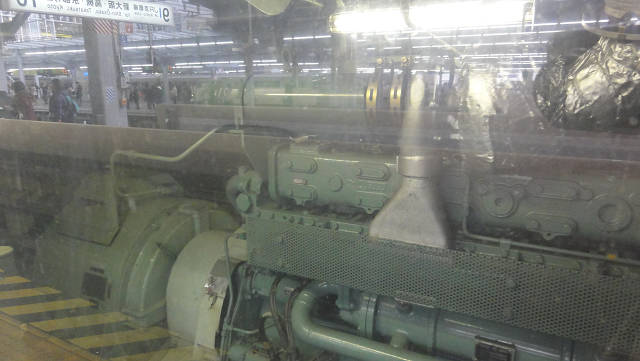 他より屋根が低い車両があったわけですが、食堂車でした。屋根に換気用の大きな装置があり、そのせいで屋根が低いのでしょう。