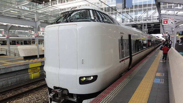同じく福知山線を通る特急こうのとり。 同じデザインの車両で、和歌山方面に行く特急「くろしお」は、大阪駅を通らず、新大阪から梅田貨物線を経由して大阪環状線に入ります。