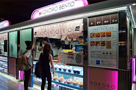 韓国のソウル駅ホーム近くにある「駅弁」屋。韓国鉄道公社が今夏、ソウル駅で、日本の鉄道旅行の魅力の一つである「駅弁」をモデルにした弁当販売を始め、人気を博している