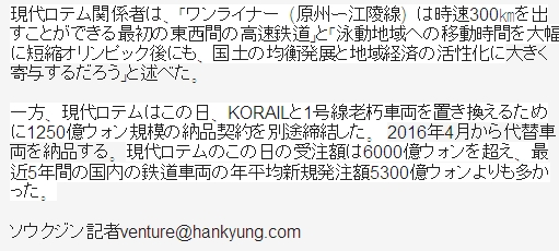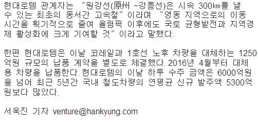ヒョンデロテム,オリンピック原州‾江陵では高速鉄車受注