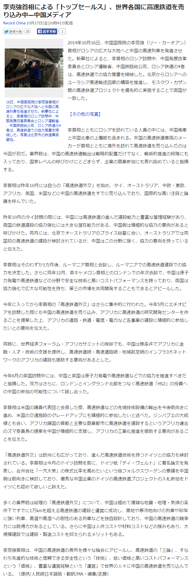 中国がメキシコに提示した価格は 210km = 4580億円だと 記事に..