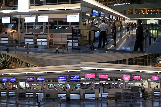 いろんな航空会社があるけど、まだ開いていないか閉まったばっかりニダね。