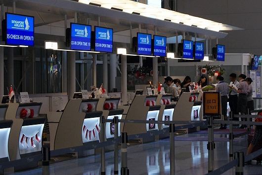 Singapore Airlinesは、もうすぐチェックイン手続きが始まる雰囲気だな。建国50周年で飾り付けられていましたよ。だけど、シンガポールはもう十分だわ。