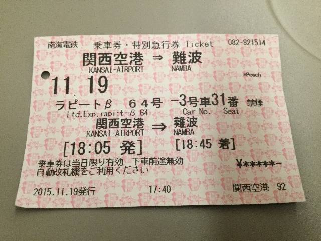 機内ではピーチ特価でラピートのチケット(1030円)が買えた。