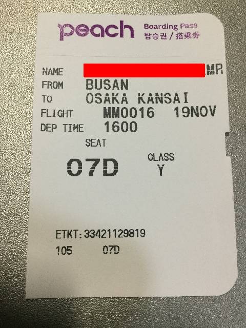 기내에서는 피치 특가로 라피트의 티켓(1030엔)을 살 수 있었다.