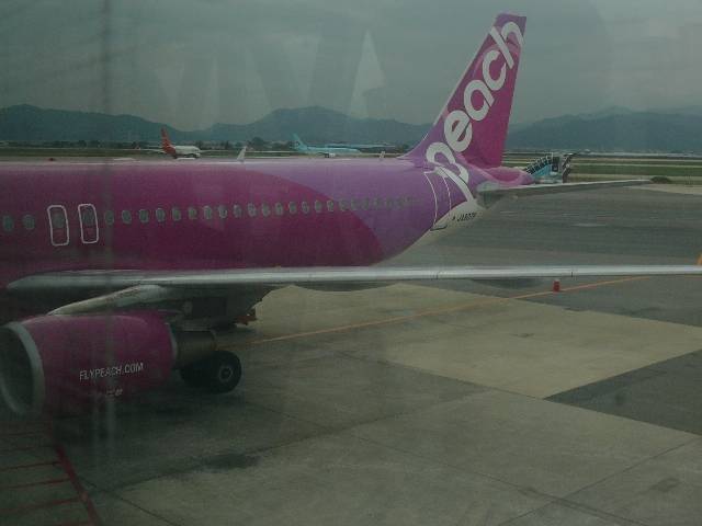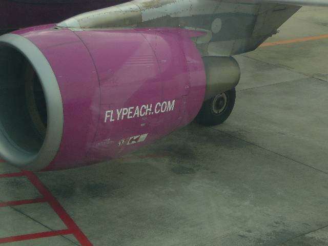 30分程度の遅延が多いピーチにしては定刻で出発。空路の経路もGPS測定しようとしたが衛星をキャッチできないようなので諦めた。