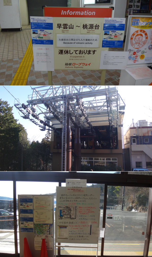 ・・・하고 싶은 곳이지만, 하코네 산 분화에 수반하는 출입 규제 에리어에 도중 경로가 걸리는 것이니까, 소운산~모자 사이는 부분 운휴.그 구간은 대행 버스를 달리게 하고, 모자~도원대간만 운전하고 있다라는 것.