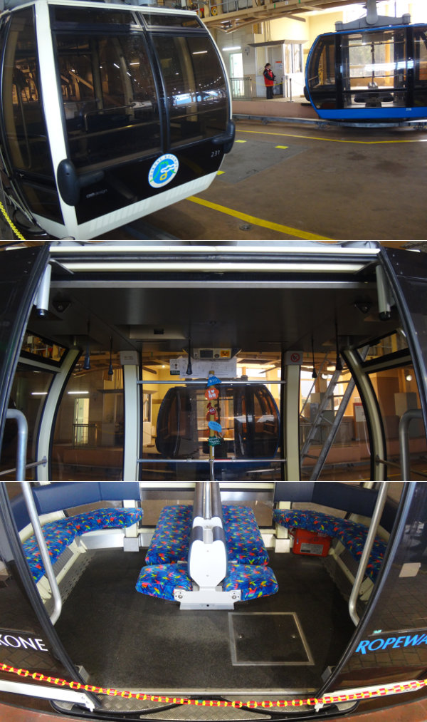 밖에서 보면 작은 듯이  느낀 곤도라.실제중을 보면, 14명 정도는 앉을 수 있을 것 같은 넓이.