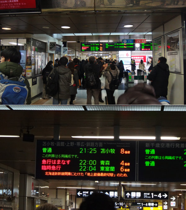 確かにこの表示も最後ですか。『苫小牧・函館・上野・帯広・釧路方面』…上野の文字は残すんだろうか。