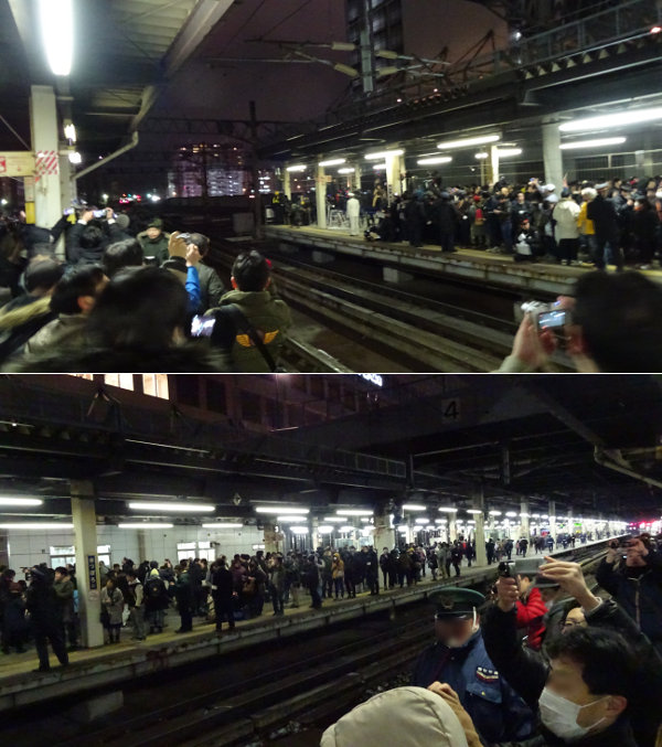 マスコミがぞろぞろやって来て、撮影スペースへと入って行きましたよ。トワイライトの時も北斗星の時も、こんなことやってたのかしら。