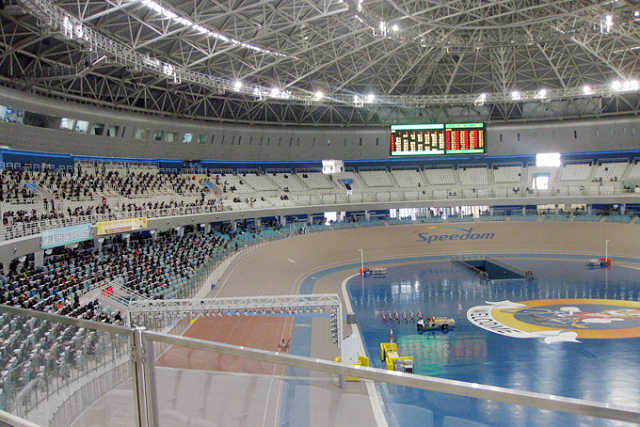 場所は、2006年に出来た光明ドーム競輪場で、日本のドーム競輪場をベンチマークして作られたらしい。一周333メートルのトラックで、日本の一般的な400メートルのトラックより短い。