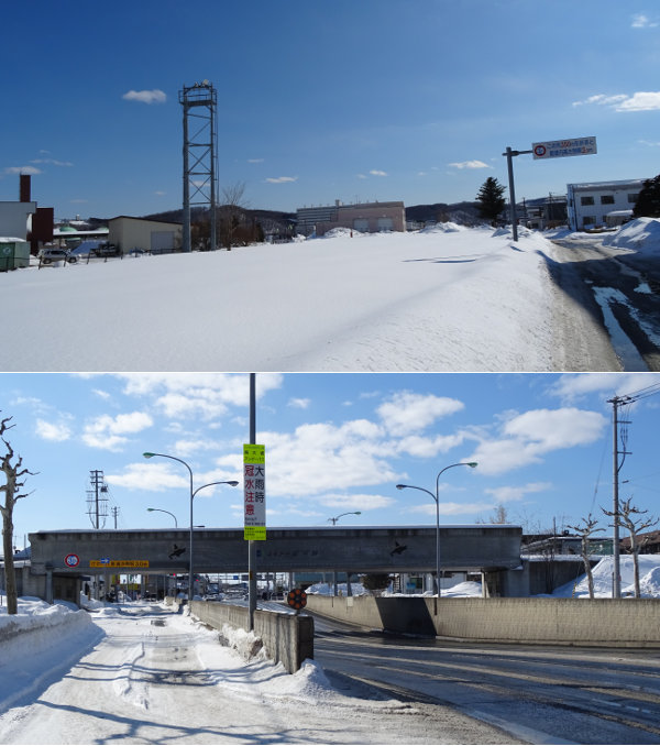 北見方は、ポイントを過ぎたところで行き止まり。その先は線路が撤去されていますよ。すぐ先にあった国道のアンダーパスも、架道橋が撤去され、道路は埋め戻されています。