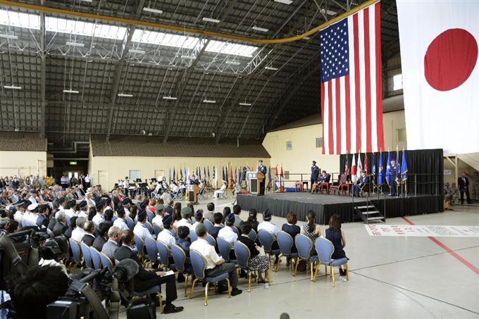 横田基地で同日に開かれた交代式では、太平洋空軍司令官のロビンソン大将から軍旗の受け渡しが行われた。
