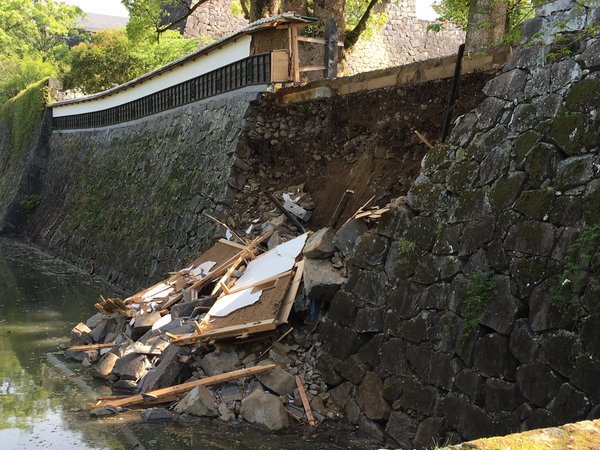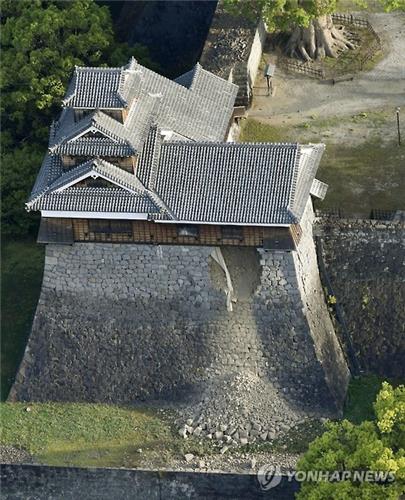 지진의 영향으로 손상을 입은 쿠마모토성.
