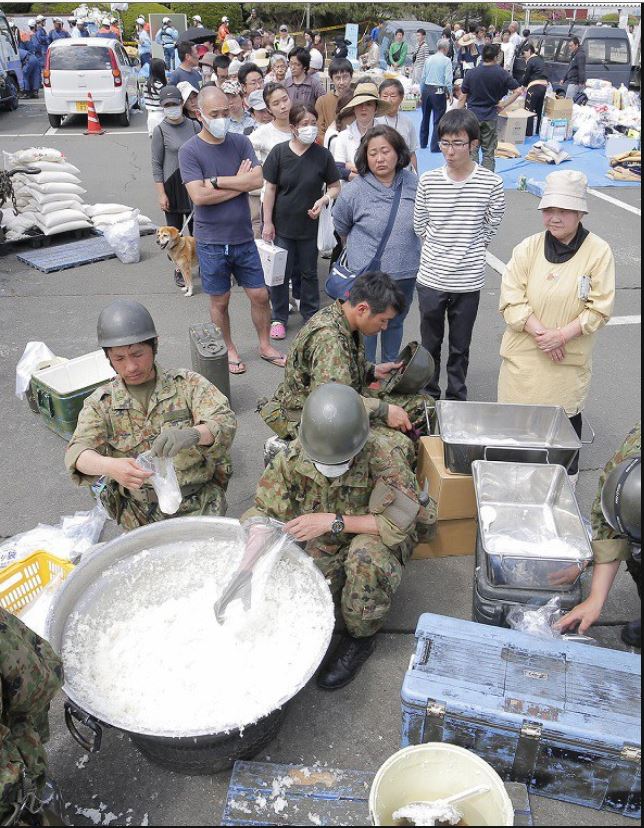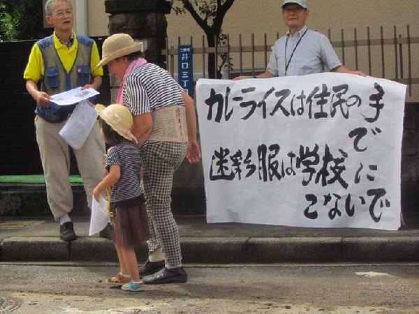구호소의 앞에서 「자위대가 만드는 카레라이스는 필요 없다」