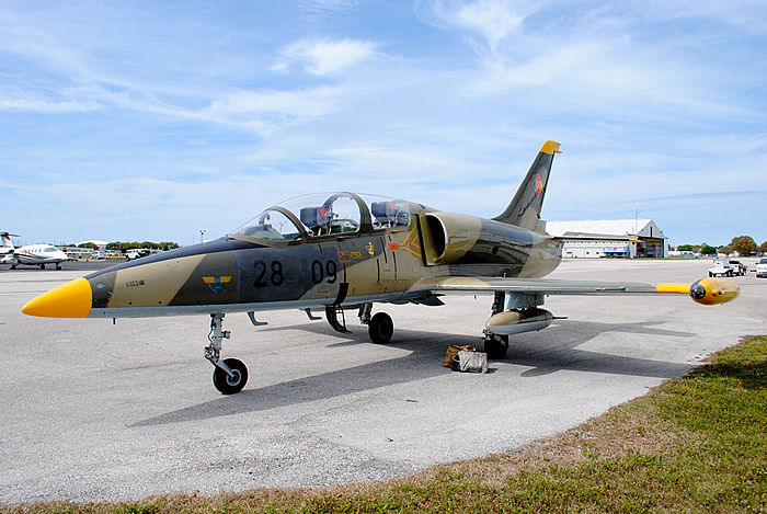 비행장에 주기되어 있는 south sudan 공군 L-39 알바트로스 고등훈련기 겸 대지 공격기