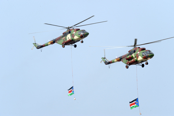 South sudan 独立記念日バレードで飛行中の south sudan 空軍 MI-17-V5 輸送ヘリ