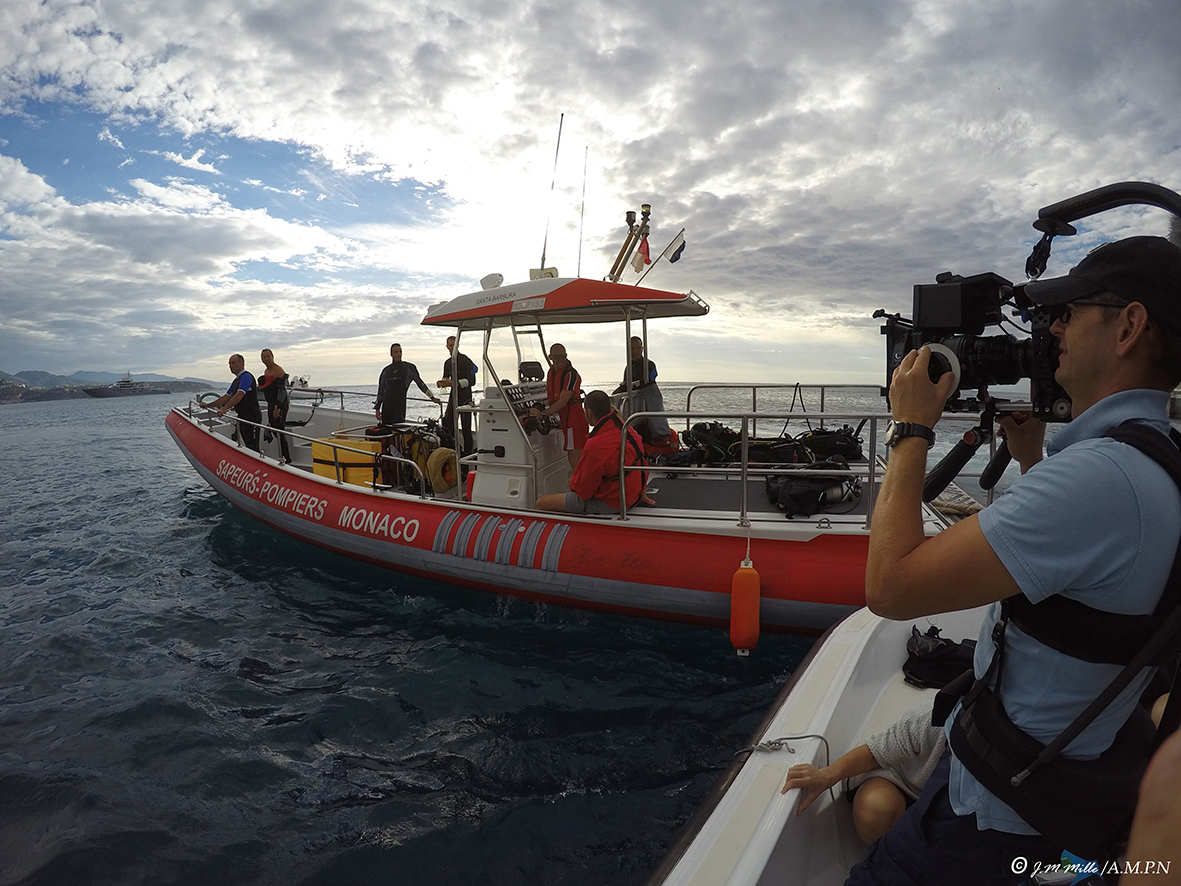 沿岸構造任務中のモナコ救助隊ゴムボート