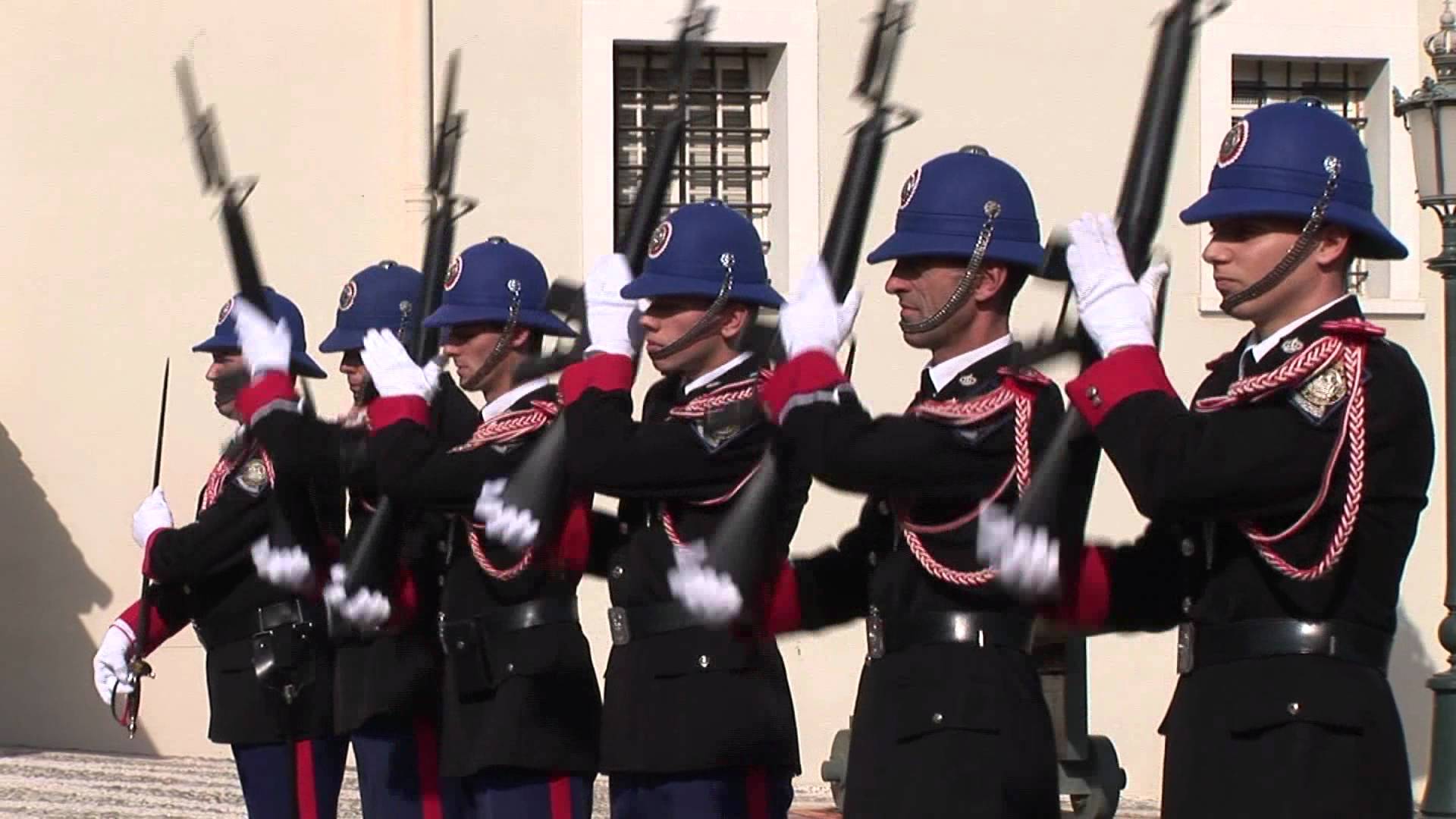 M-16A2 突撃小銃を回す妙技をしているモナコ近衛騎兵隊員