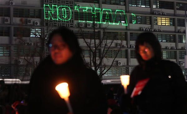 「NO THAAD」의 프레이즈를 레이저로 촬영해