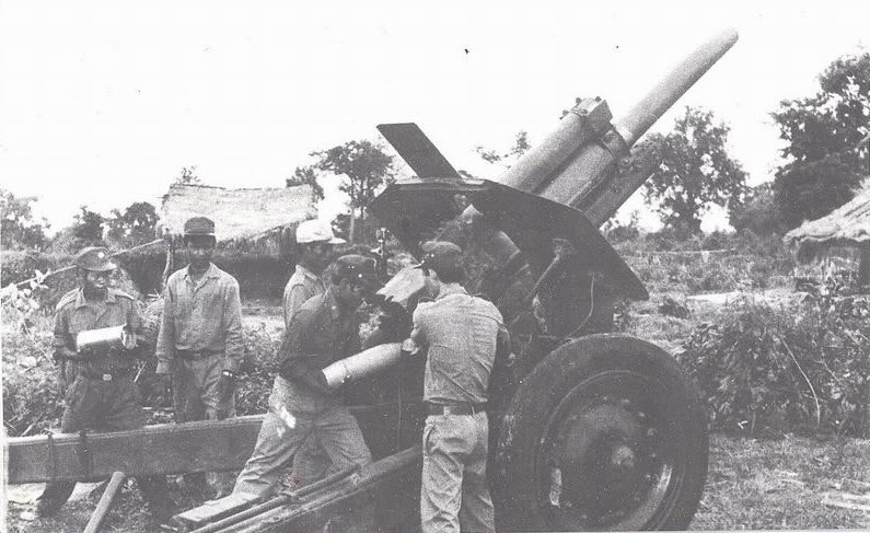 M-46 130mm ギョンインポを発射しているカンボジア砲兵