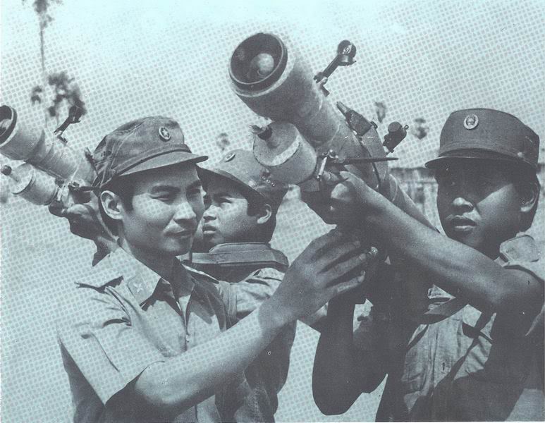 SA-7 지대공 미사일을 조작 훈련중인 캄보디아 군인