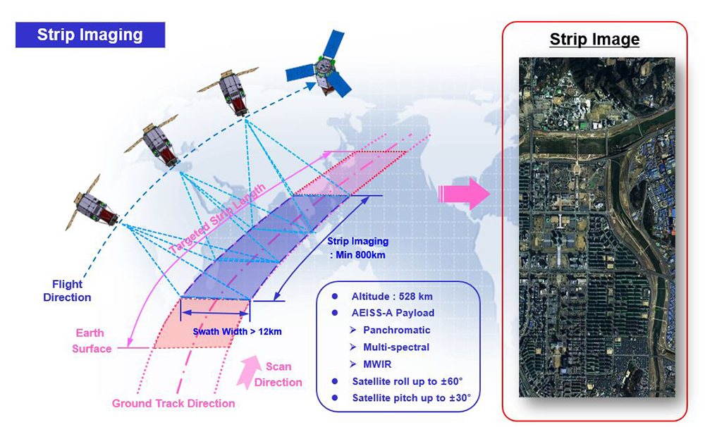 アリラン 3A好意映像獲得方式は光学カメラで地上を扱くように映像を取るストリップ(Strip) 撮影モードが基本だ.