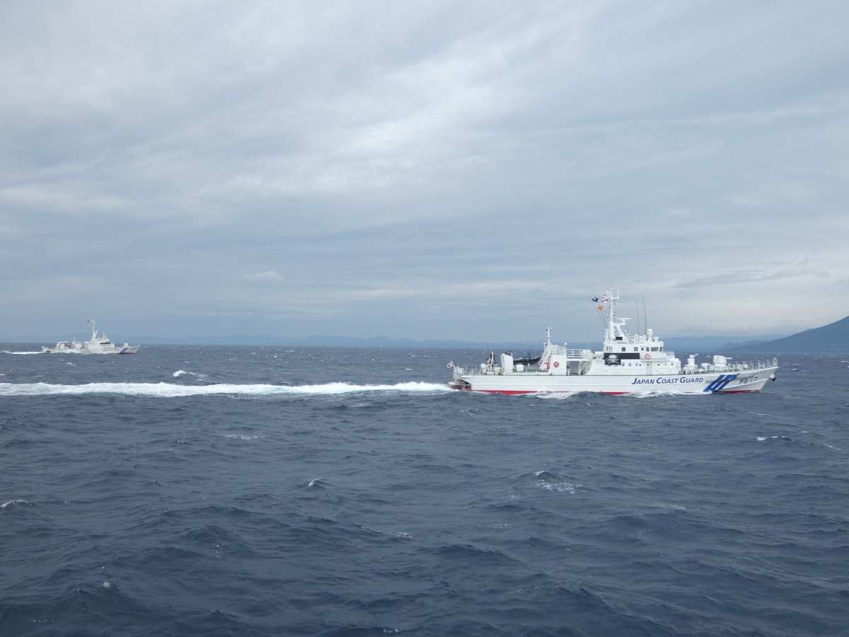 미사일정 「인가」로부터 보는, 해상보안청과의 공동 훈련의 님 아이입니다.