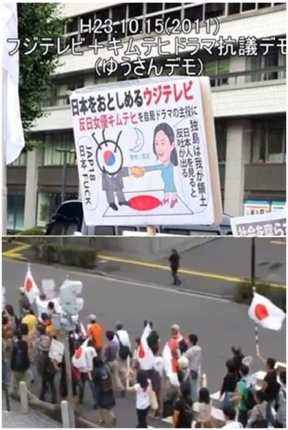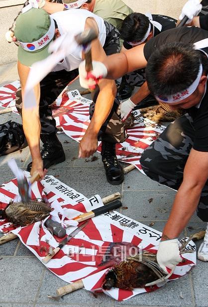 일본 도호쿠 대지진의 재해를 축하하는 한국 원숭이