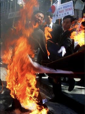 日本東北大震災の災害を祝う韓国猿
