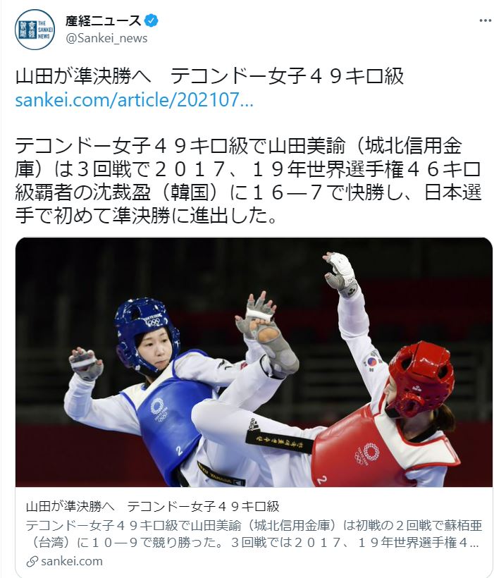 フェンシングに続いて、テコンドーでも日本が勝利しました。