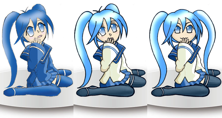 ←元の絵 / 色を調整・顔のパーツ調整 / 色を調整・顔を変更→