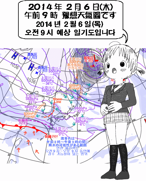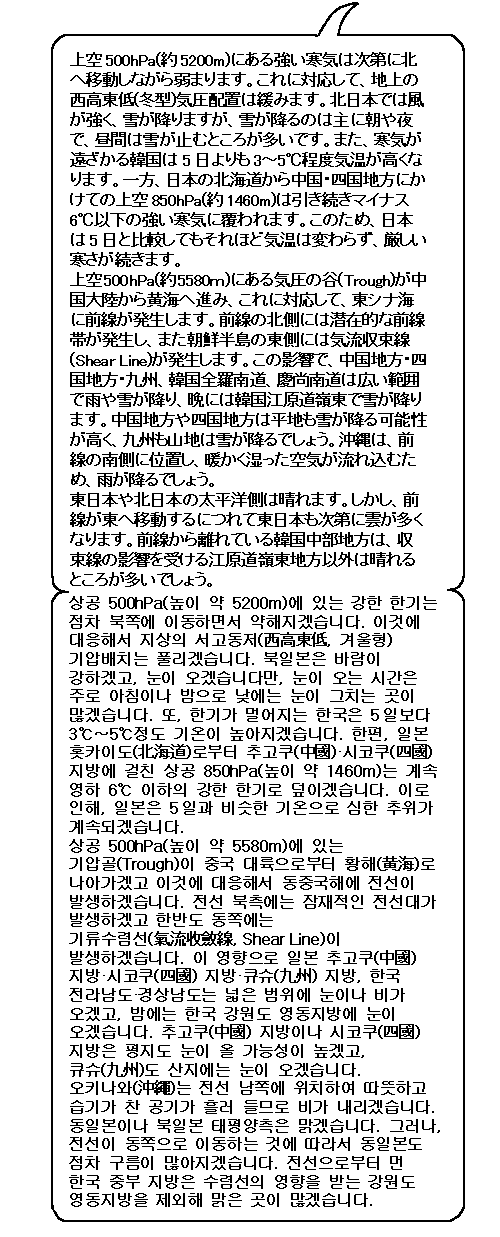 일본은 내일도 춥겠다. 그리고 서일본이나 한국 남부는 눈이 오는 곳이 많겠습니다.