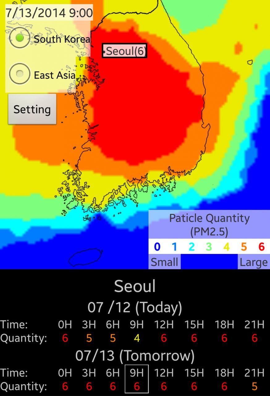 韓国は、超微細粉塵の測定器がないので、予報も出せない。