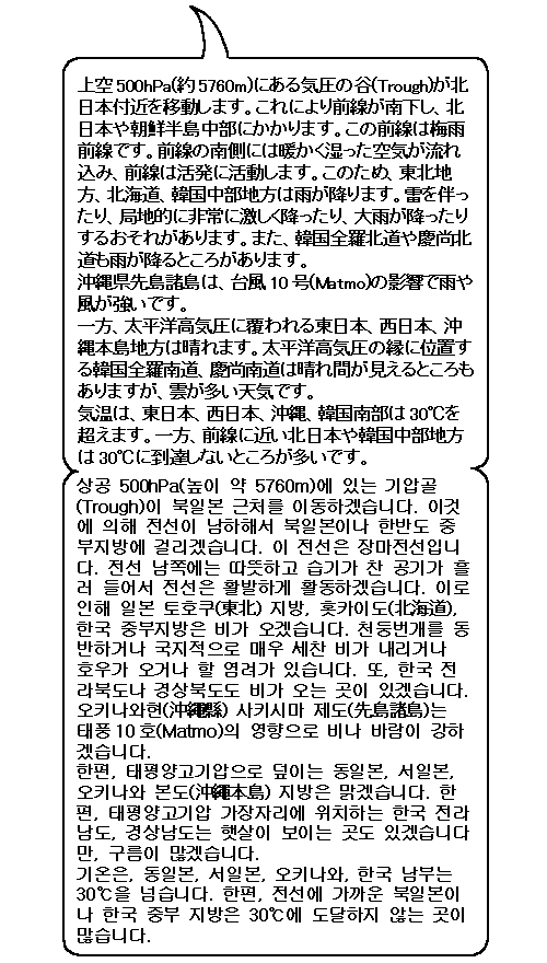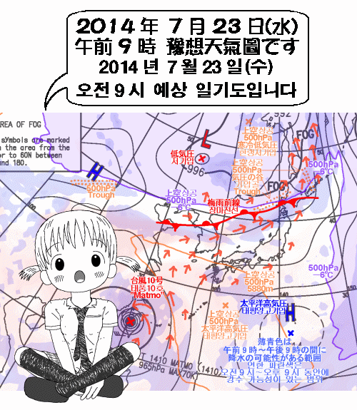 내일은 24절기 "대서(大暑)". 햇살이 보이는 지역은 최고기온이 30℃를 넘겠습니다. 열사병에 조심하시기 바랍니다. 한편 전선이나 태풍에 가까운 지역은 호우에 대해 경계하시기 바랍니다.