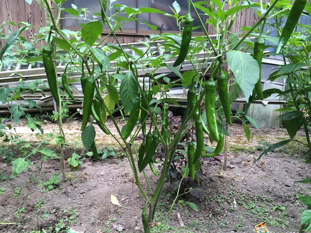 庭の畑でこんなにたくさんの唐辛子が成りました